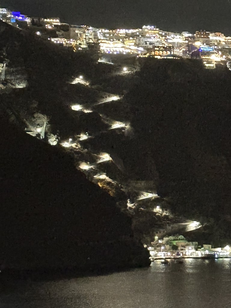 The drive back to Fira was about 20 minutes. There was another hike up a hill (this a theme that will continue). We got to the town and split for the rest of the group. My parents were already in line for the funicular and were warning us that it was a long one. We knew that we’d probably need to just walk down the steps, so we decided to head that way.