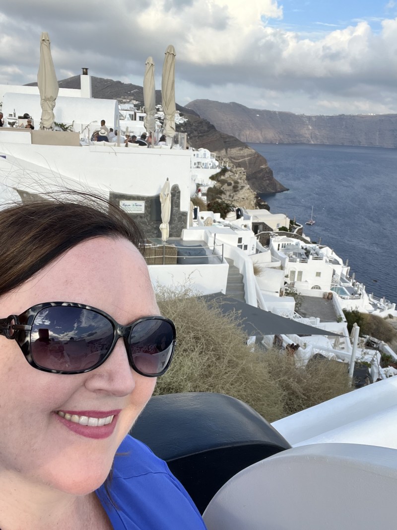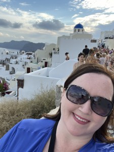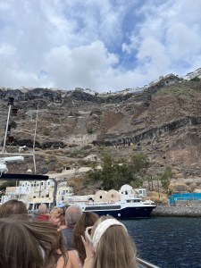 The first port we were visiting was Santorini, Greece. This is a place I wanted to go FOREVER, so I was thrilled. We woke up thinking it was 10, but the time change got us and it was really 11. Thankfully, we weren’t going to be there until 1pm. Em went to go get us both coffee, while I jumped in the shower to start getting ready for the day.