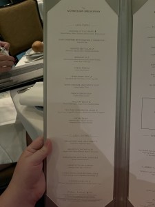 Mom and Jeff got on the tender about 5 minutes after us. If you’re taking notes, they were in line for the funicular about 30 minutes prior to us getting to Fira. Even with our leisurely walk through town and then taking the steps down, we still got down faster than them. We waited another 10 or so minutes before the tender headed back to the ship. We all agreed to quick showers and then meet in The Manhattan Room for dinner.