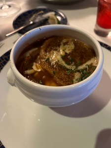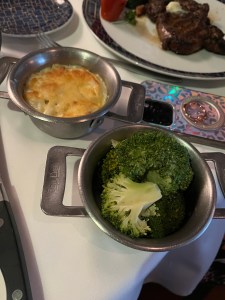Pictured above was my dinner…. Crab Cake (good); French Onion Soup (better than the main restaurants, but still not great); Ribeye (excellent); Steamed Broccoli (fine – standard); Au Gratin Potatoes (these were awful – I should have gotten the baked potato); Chocolate Cake (my sisters that I tried – really good); OMG Carmel Butterscotch Cheesecake (this was phenomenal – I wished that I could have gotten this another night it was so good).