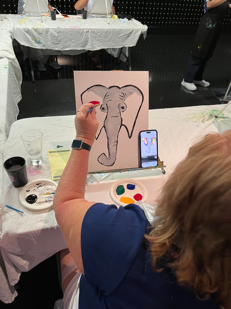 I woke up around 4. Mom and Megan were heading to Bar 21, so I went with them. We sat and just chatted…. we also drank some really yummy mudslides! Emily met up with us on her way to the gym, so she joined in for a few minutes. Megan wanted to meet her there and Mom was heading to a painting class, so we all went our separate ways. I found a cozy nook to read in, while Mom painted. Towards the end of the class, I checked her progress before heading back to the room.