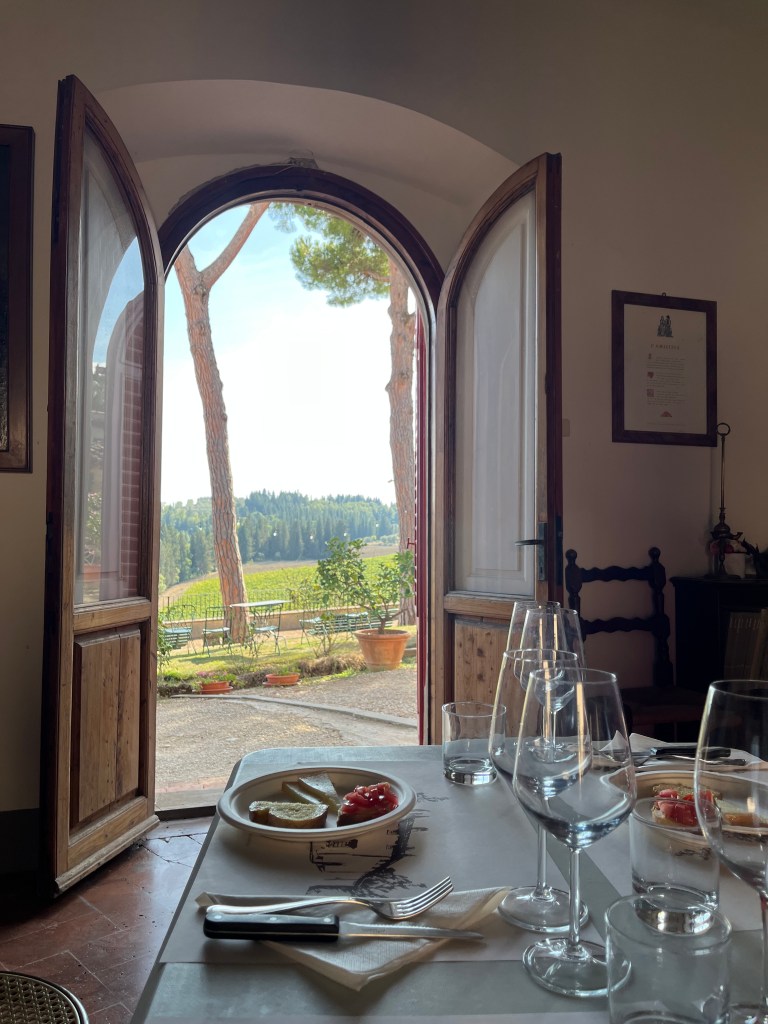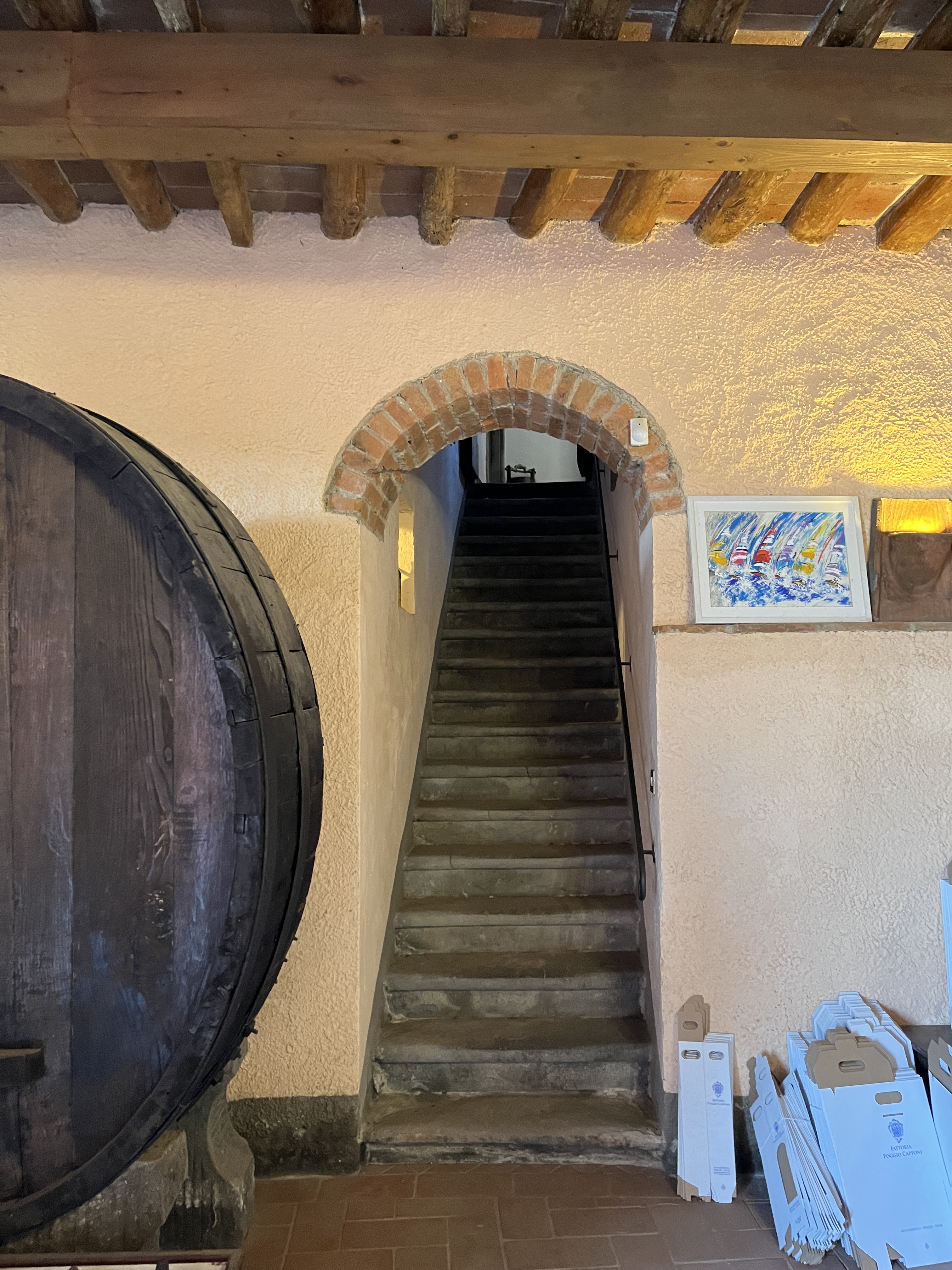 We met back up with Mom and Jeff and, shortly after, Massimo picked us up. We left Florence to head to our next adventure – a winery in Tuscany! The drive alone was a dream come true. We arrived at our destination – a 500 year old private winery that has only had three owners. We were given a tour and history of the winery, along with a trip to the cellars.